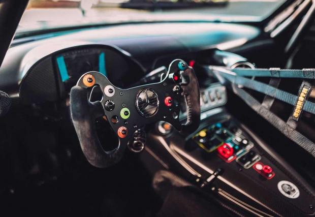 Какво е по-различното на този състезател от „нормалния“ Merc-AMG GT3? Ами, основно споменатите надписи, като Edition 50 идва и с по-шумен ауспух [одобряваме], с по-агресивен аеро пакет от карбон [одобряваме] и подобрения в интериора – нов ролкейдж, нови карбонови седалки и нови копчета по таблблото в комплект с нов инструментален панел [също едно голямо „ДА“ от нас].