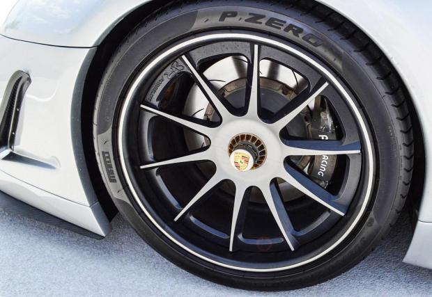 Такааа.... тази 996-ичка видимо е доста модифицирана, а списъкът с частите вложени в нея е по-дълъг и от този с опциите, които предлага Porsche за базовата си Carrera. Повечето брутални работи, които виждате отвън, раздувките, спойлерите и – о,да – въздховода, са направени от карбон и кевлар, за да бъдат леки. Леки са и джантите - Forgeline 19-ки отпред и 20-ки отзад, обути в Pirelli P Zero гуми, а зад тях надничат AP Racing спирачни апарати.