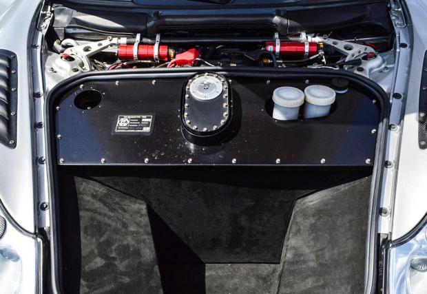 Моторът е с обем 3,8-литра, но както казахме, „облагороден“ с няколко големи кашона с части. Блокът бил от 911 RSR, ризите на цилиндрите Mahle, мотовилките са ковани Carillo, главите са от GT3 Cup, а турбините - две Garrett GTX30R с водно охлаждане. Супер. Има и още – ECU-то е MoTec, като колата е снабдена също с контрол на сцеплението (не лоша електроника, когато имаш 1160 коня и задно) и лаунч контрол.