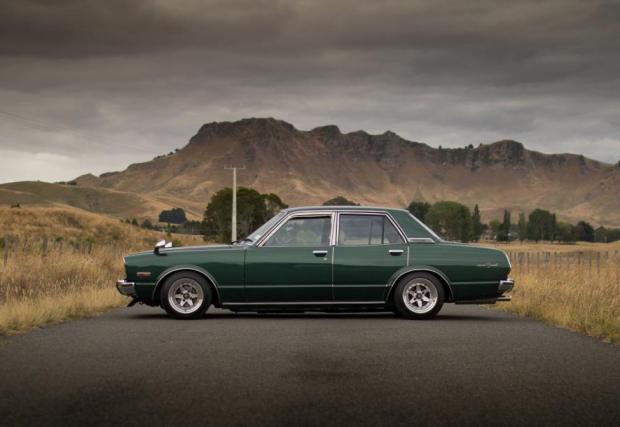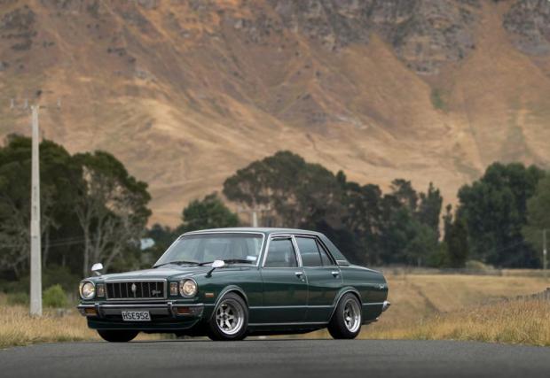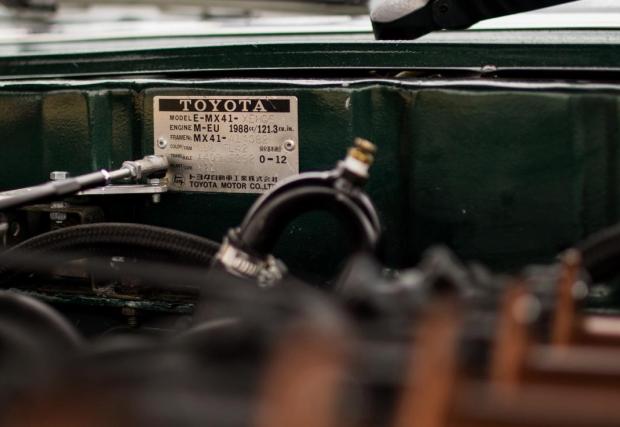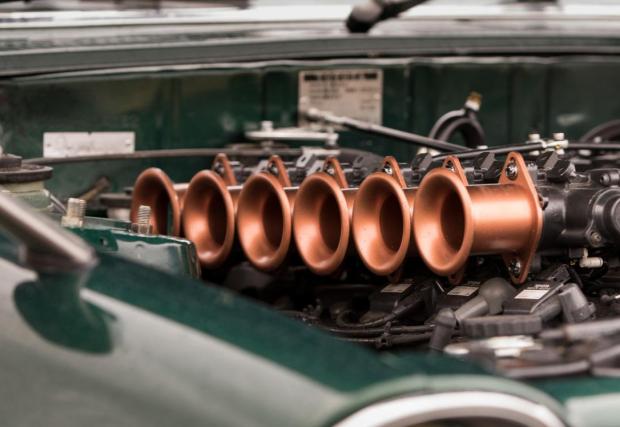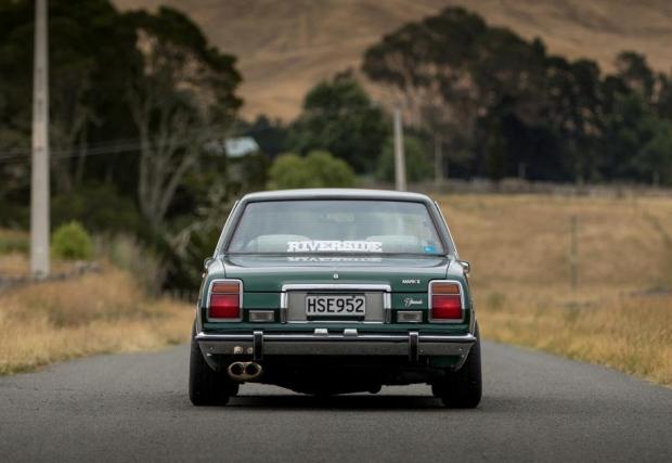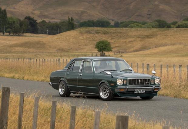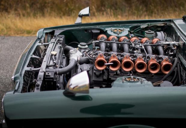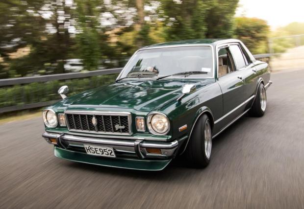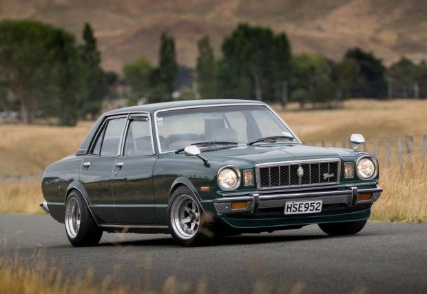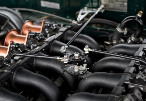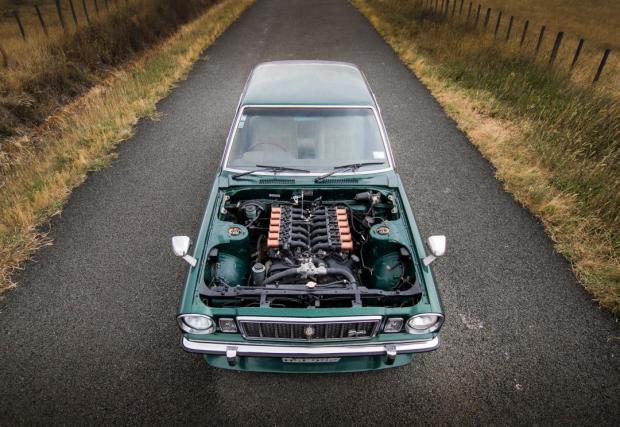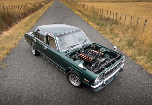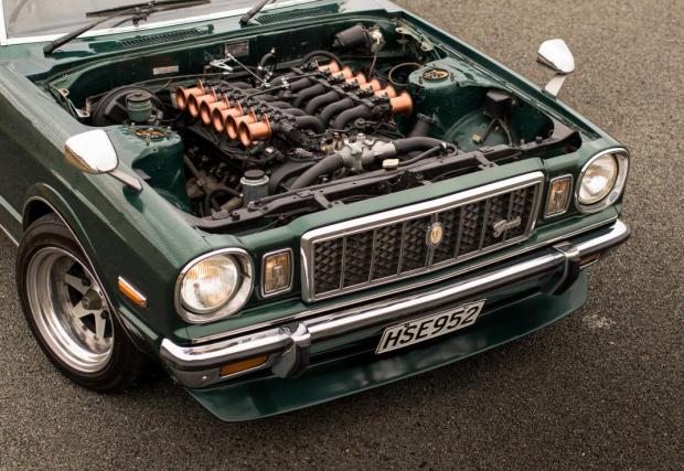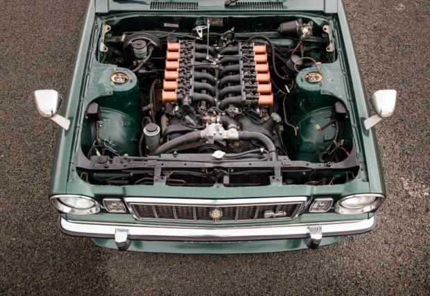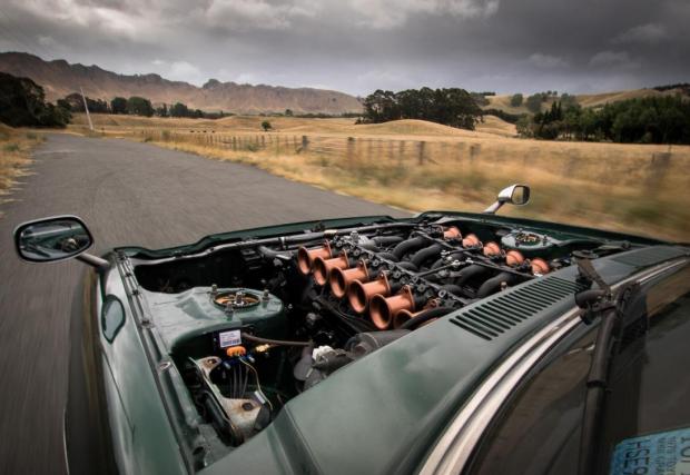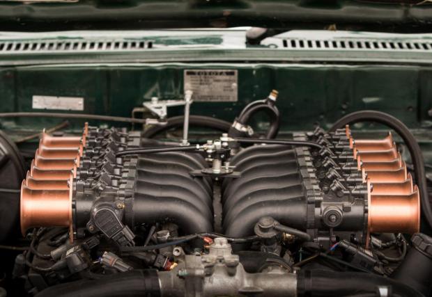 Това е 5-литров V12 с 400 коня, ръчни скорости и медни фунии на дроселите, монтиран в Toyota Cressida X30