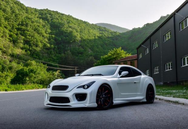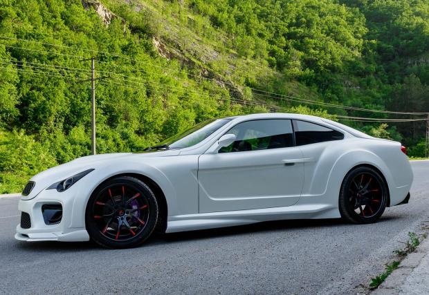 Фаровете са изработка на Tuning Performance, a стоповете са елементи направени за Ferrari F430. Ауспусите? Изглеждат ви познати? Това са накрайници от Nissan GT-R R35. Любопитно е и това, което работи под предния капак – оригиналният 3,2-литров шестак е сменен с 4-литровия S5B40 от M3 E92, който в оригиналния си вид генерира 420 к.с. и 400 Нм. В случая е използвана ръчната скоростна кутия с 6 степени, за да е по-забавна за каране. Спирачната сила пък се осигурява от компоненти на D2, на които сливенското ателие става официален представител за България.