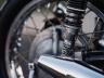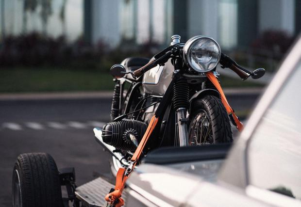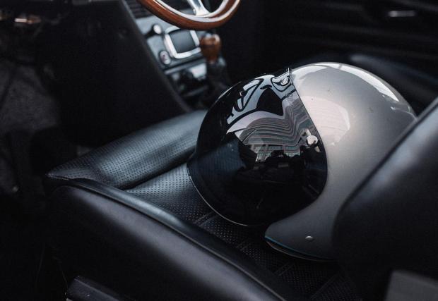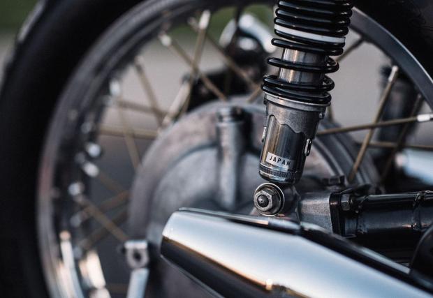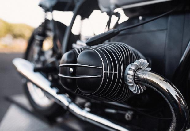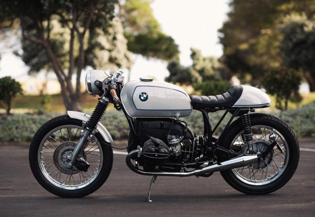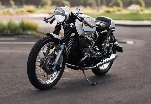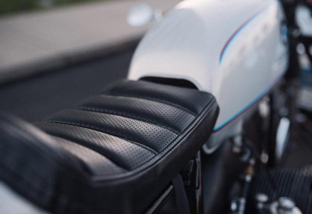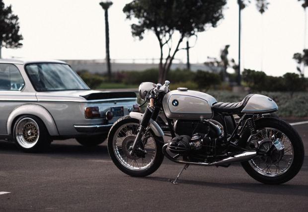 Супер, ами какво да кажем за мотора? BMW R 75/6 също от 1975 година, като за преработката му Ли се обръща към добър приятел и специалист в областта на име Фернандо. Неговата изработка е не по-малко впечатляваща от тази на колата, променен в кафе рейсър посока. Вилката е стоковата, но с къстъм тройник горе, а отзад работят Redwing шокове, закачени към 18-инчово колело Akront. Отпред се върти същия алуминиев компонент, но с един инч по-голям. Фарът пък е от друг мотоциклет с боксерен двигател – от руски „Урал“, но също модифициран, като по байка има и части Motogadget.