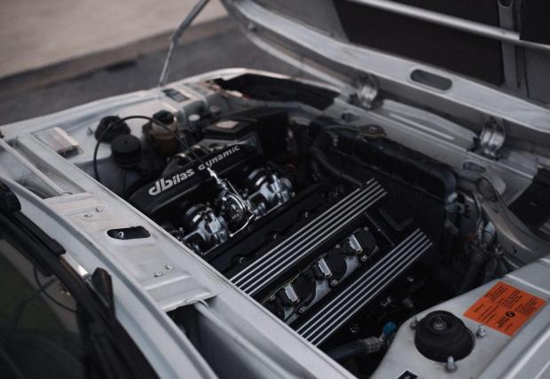 Що се отнася до визията, някои от аеро елементите са осигурени от Jaymic в стил 2002 Turbo, задният спойлер е от Ireland Engineering, a мигачите са „плоските европейски“ компоненти. Вътре пък се намират задни седалки от Е24 с идентична тапицерия, воланът е Nardi Personal, а подлакътникът е от, внимание, Honda Civic. Може и да звучи абсурдно, но изглежда сякаш е правен точно за там.