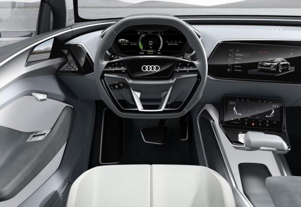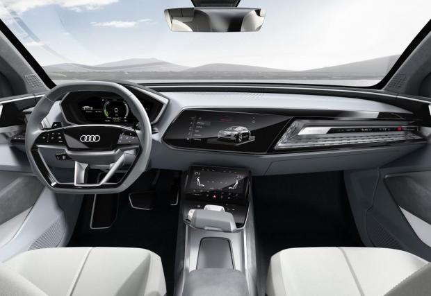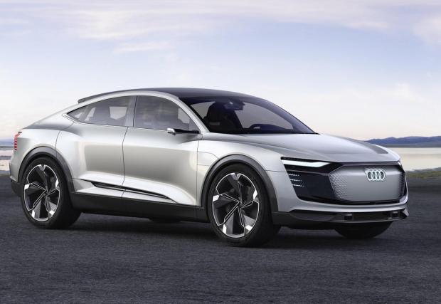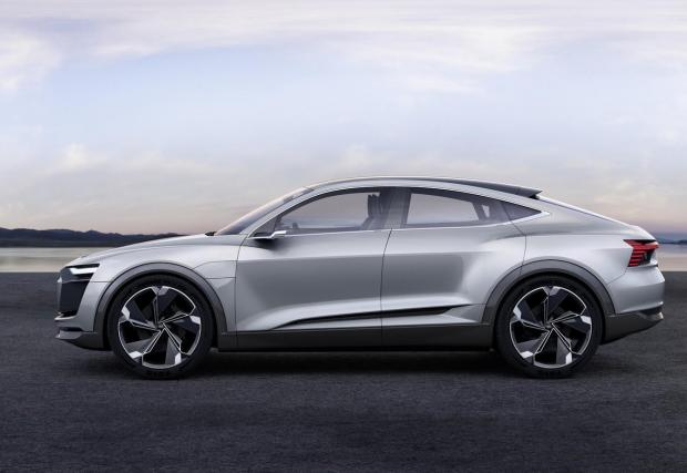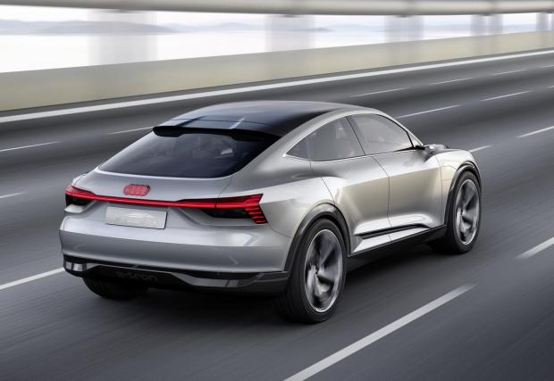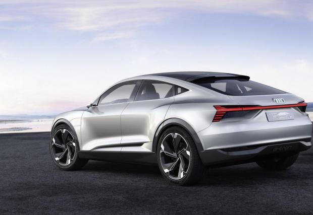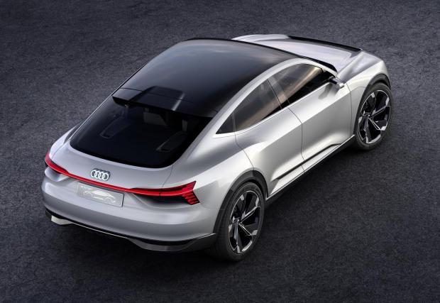 Импозантното Audi E-Tron Sportback се разходи по покрива на мол. Видео