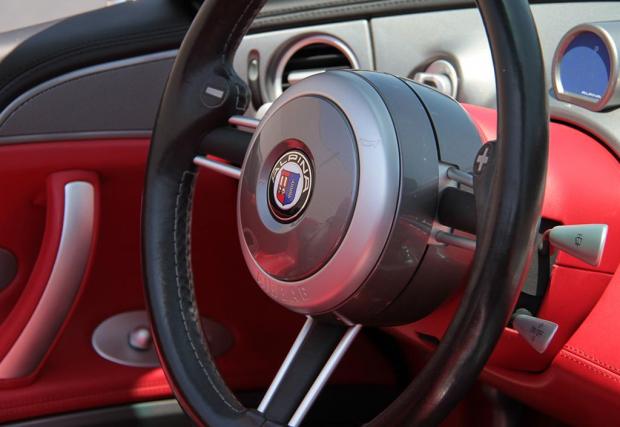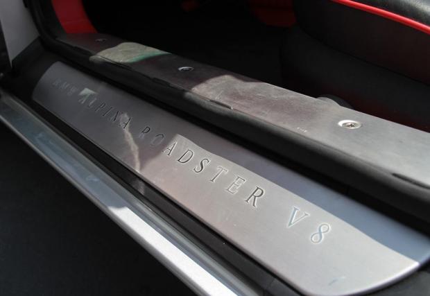 Alpina V8 Roadster е интересно животно. Колата е базирана на доста рядкото Z8, което пък от своя страна ползва части от M5 E39, но производителят от Бухлое заменя 4,9-литровия 400-конен атмосферен V8 S62 със своя версия на 4,8-литровия M62 V8 с 375 к.с. (за САЩ; за Европа са с 381 к.с.), а за трансмисия избира 5-степенния Steptronic вместо 6-скоростната механична кутия на Z8. Тоест, вместо да направят колата по-спортна, Alpina я преориентират в по-GT посока, макар че при V8 Roadster класическият ограничител на 250 км/ч е вдигнат с 10 нагоре.