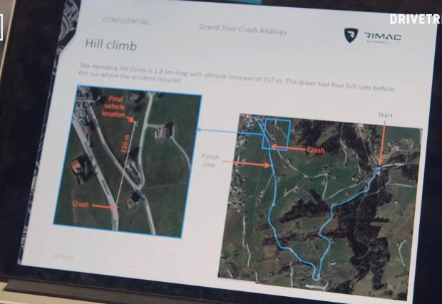 Както вероятно вече знаете, Ричард Хамънд катастрофира сериозно в Швейцария по време на снимките на втория сезон на The Grand Tour. Той изгуби контрол над мощния над 1000 к.с. (1200 казва Хамънд) електрически Rimac Concept One, което резултира в доста впечатляващ полет, няколко превъртания през таван (кадрите и данните все още се проучват за да се разбере колко точно пъти Хамънд се е завъртял през таван), за да спре колата на 110 метра от мястото на „отскока“. След което се запали.