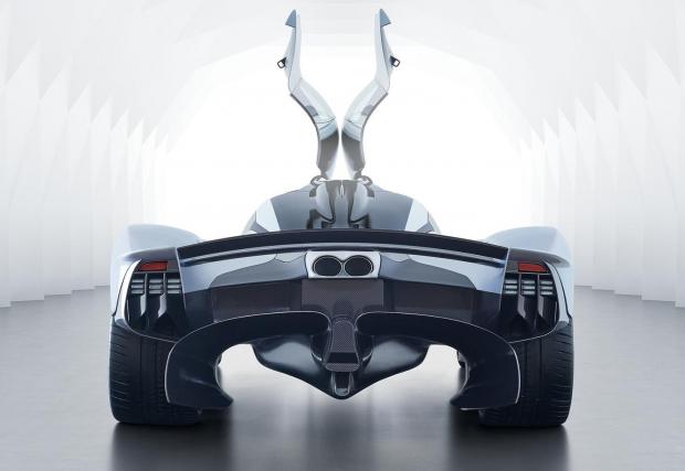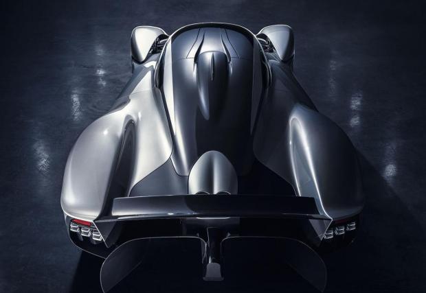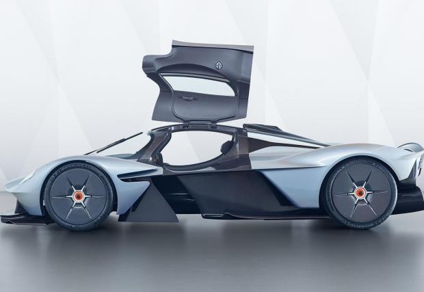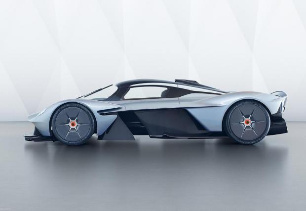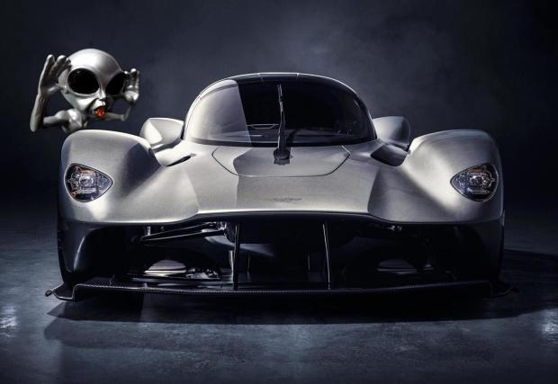 Aston Martin Valkyrie прилича на летяща чиния. Емблемата му е с 99,4% по-лека от нормалната, ще разполага с 1000 коня