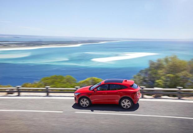 Посрещнете най-малкия кросоувър в гамата на Jaguar. Зверчето ще се намести под F-Pace в портфолиото на марката, за да се конкурира с опоненти от класа на BMW X1 и Audi Q3. Опционалните 21-инчови колела на E-Pace не са най-често срещаната гледка в класа. Свиквайте. Сред опциите откриваме още черен или панорамен покрив. Размерите са толкова малки, че симпатичното джипче прилича на окарикатурен F-Type. Забавен е.