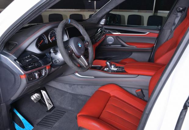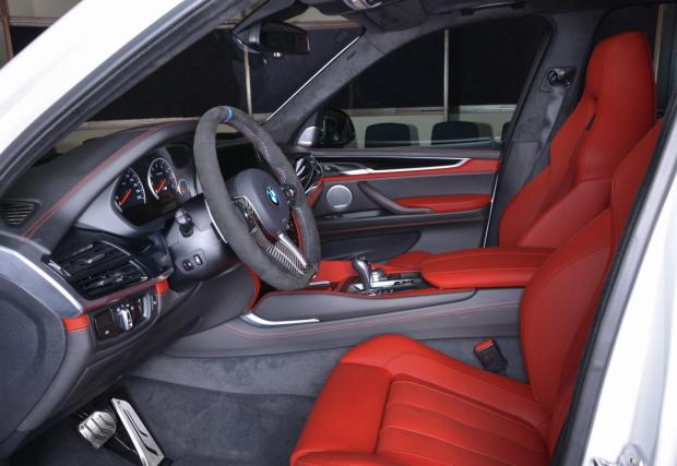 Това BMW X5 М не случайно изглежда така. Освен да сложи тикче срещу абсолютно всяка опция в каталога на M Performance, собственикът му се е отбил и в няколко тунинг ателиета. Действието, разбира се, се развива в Обединените арабски емирства, където не знаят какво е автомобилно благоприличие. Изпускателната система е от каталога на Akrapovich. Предният капак е на Manhart, а страничните карбонови раздувки идват от 3D Design. Надникнете в интериора, но най-добре със слънчеви очила, иначе има опасност да бъдете заслепени.