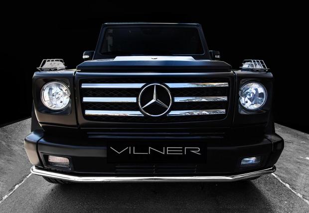 Отвън? Ателието не са пипнали почти нищо, като изключим... целия екстериор облечен в матово черно фолио. Готин завършек е подписът на Vilner, този път в хромиран и поставен под могъщото означение G 55. Тази кола определено ни харесва, колкото и абсурдна да е идеята за подобна тяга в 2,6-тонен всъдеход с класическо отделно шаси. Макар, че когато сравним G 55 AMG с G 63, то първата версия изглежда разумна, колкото дизелово Civic. Разгледайте стилната работа на Vilner в галерията, след което кикнете на този струващ, колкото 5,5 Touareg-а Merc-AMG G 65 с 630 коня.