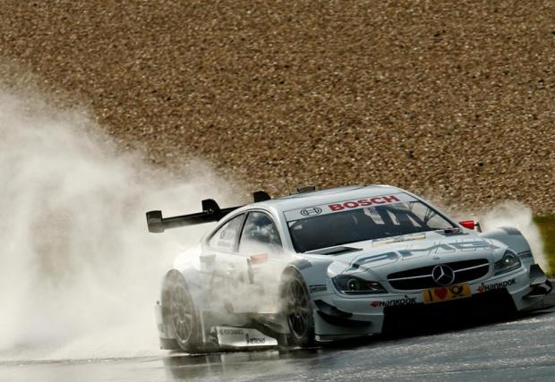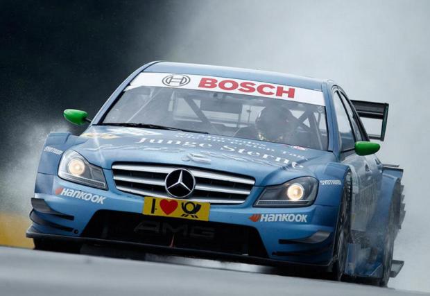 2013. Не особено силен сезон за Mercedes, но пък канадецът Робърт Уикънс печели първата си победа в DTM, при лоши атмосферни условия на пистата. Merc C-Class пък се научава да вдига предни гуми, както се вижда на снимката.
