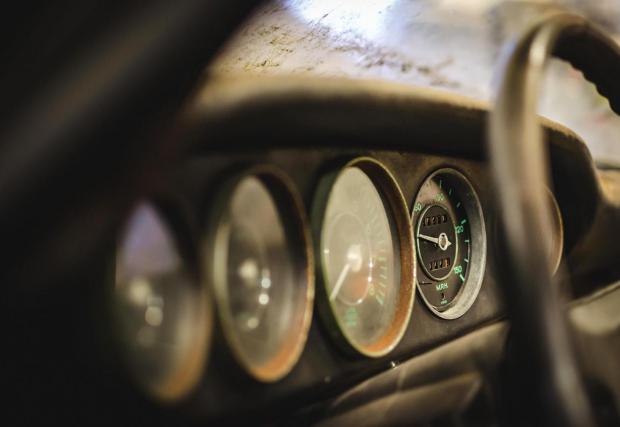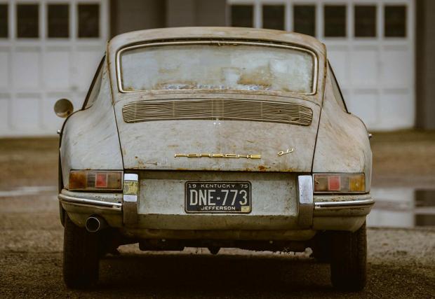 Километражът е застинал на 17 213 мили, стрелката на скоростомера сочи около 40 мили/ч, стъклото пред циферблата липсва, а часовникът е замръзнал на единадесет без пет. Екстериорът е уморен, но златистите надписи “Porsche 911” сякаш са отказали да се поддадат на времето, не демонстрирайки никакви признаци на патина. Така изглежда един от най-ранните и оригинални екземпляри на Porsche 911, след като е стоял в покой в продължение на четири десетилетия.