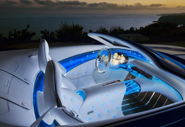 Mercedes-Benz Vision Maybach 6 Cabriolet Concept се задвижва от електромотори, общата му мощност е 750 к.с., а пробегът с едно зареждане е 500 км, казват немците. Любопитна е опцията за супер бързо зареждане с 350-киловатово устройство, с което само за 5 мин може да „сипете“ достатъчно електричество за още 100 км.