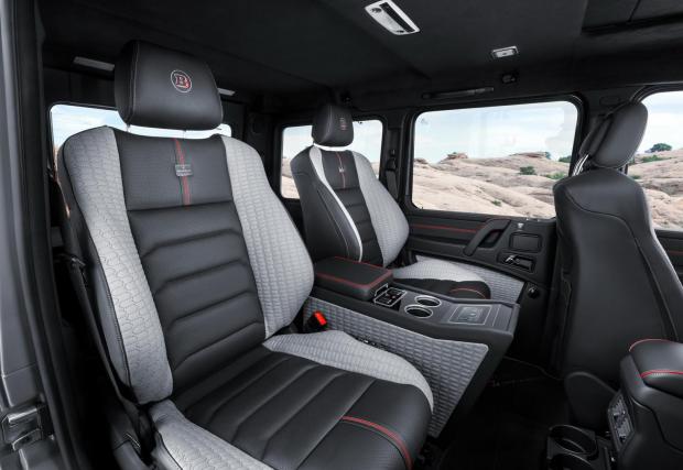 Brabus са сменили и амортисьорите с направени за тях компоненти от KW, а увеличението на тягата спрямо базовите 416 к.с. и 610 Нм е +134 коня и +190 Нм. Тунинг маниаците от Ботроп са добавили и някой друг LED за да светне G-Class със 137 светодиода, ако не броим тези в стоповете. Любопитна информация от официалния сайт на Brabus е и обявеният среден разход: 13,8 л/100 км. Нииииикакъв шанс. Разгледайте галерията, след което може да кликнете и на грозното мнение на Mansory по темата на “Merc G 500 4x4²”.