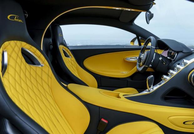 По въпроса за жълтия екземпляр от снимките, вероятно се досещате, че цветът не се е ограничил само до купето, а е проникнал и в интериора. В САЩ колата ще струва около 3 млн. долара, като повечето глезотии на купувачите, като въпросния цвят например, се покриват от въпросната сума. Както и при всички други екземпляри от модела, за задвижване се използва 16-цилиндров квадритурбо мотор с 1500 к.с., който ускорява чудовището с маса от два тона до официална максимална скорост от 420 км/ч. Това го превръща в най-бързата оса на планетата.