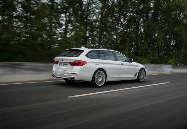 В сравнение със заводското BMW M550d с четири турбини разликата в мощността е нищожна, но нека не забравяме, че M550d е електронно ограничен на 250 км/ч. Спирачките и настройките на окачването са взети наготово от B5 Bi-Turbo, а комбито идва със задно пневматично окачване. Като опция се предлага много готиното завиване на задните колела и активно управление на накланянето в завой. Класическите колела Alpina идват в 20-инчов размер и с гуми 255/35 отпред и 295/30 отзад.