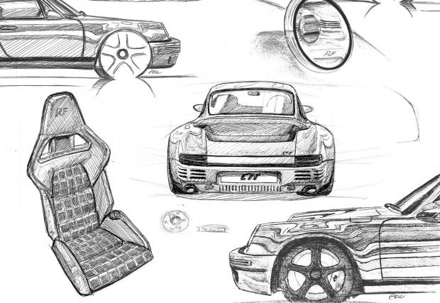 Тази година се навършват 30 години от това добро дело и Ruf напомнят за него по внушителен начин. В Женева тунерът представи жълтата кола, която виждате на снимките, изцяло карбоново 911, чийто параметри са... потресаващи. Карбонови са не само външните панели, но и шасито, в резултат на което колата тежи 1200 кг. Окачването в четирите края е с двойни А-раменни носачи, спирачките са карбо-керамични дискове – 380 мм отпред с 6-бутални апарати и и 250-милиметрови отзад с 4 бутални апарати.