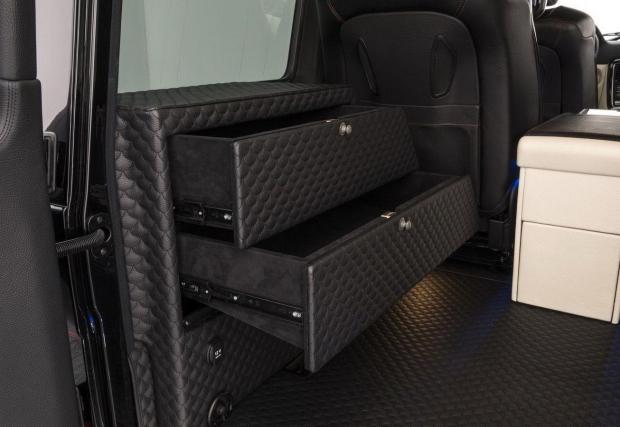 Част от промените засягат интериора, от който е разкарана общата задна седалка, за да бъде заменена с две индивидуални кресла. Поставките за чаши имат функция за охлаждане и загряване, очевидно е било необходимо да се добави и вграден сейф.