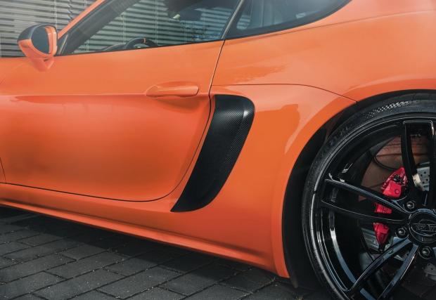 Пред вас е новият тунинг пакет на TechArt за Porsche 718. С него германското ателие иска да докаже, че с едва шепа детайли е напълно възможно да промените радикално колата си, независимо дали е Porsche или старо E46. Висококачествените въглеродни елементи вече не са толкова безумно скъпи, изтъкват от TechArt. За съжаление без да посочват цени. Те предлагат коруби за огледалата, преден сплитер, решетка, отвори за охлаждане и рамка за дифузьор – все малки детайли от подсилена с въглеродни влакна пластмаса, които обаче ще променят колата значително.