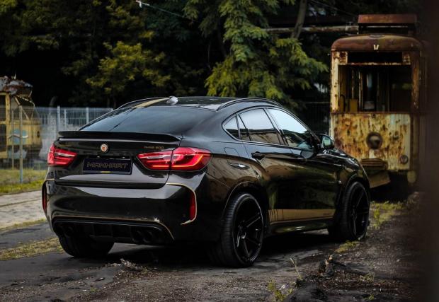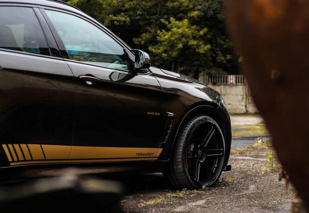 Далече сме от мисълта, че BMW X6 е красива кола, но трябва да признаете, че има обаяние. Голямото семейно кросоувър купе прави впечатление, а с черно лаково покритие може да мине за почти елегантно. Manhart съумява да подсили това усещане с новия си тунинг пакет.