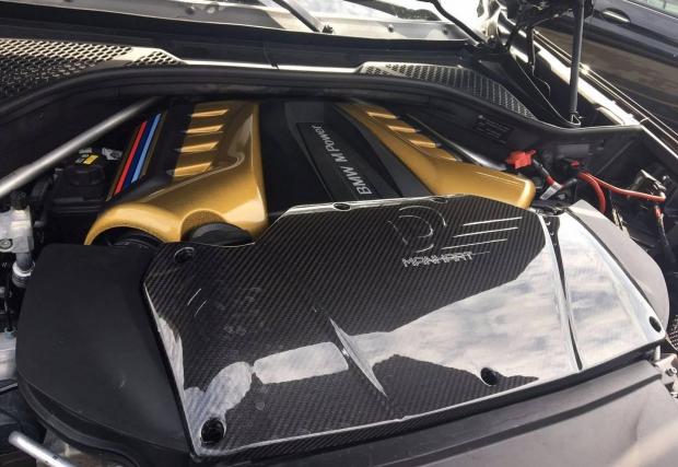 Колата се казва MH X6 800 и постига 830 к.с. в съчетание с 1100 Нм – всичко това от познатия ви 4,4-литров битурбо V8. В предния отвор са добавени значителни по размер отвори за охлаждане, които са реална заплаха за цялата перната флора под размерите на скален орел. Състезателните стикери добавят поне 20 кончета, а почти всичко под тях е изработено от въглерод.