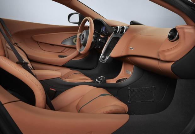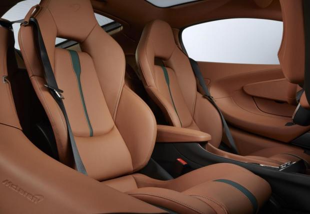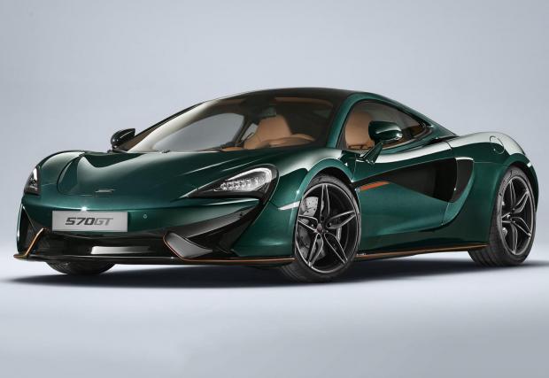 С какво е по-различен McLaren 570 GT от базовия 570? Ами, основно заради цвета, „британското състезателно зелено“, няколкото британски флагчета по екстериора, както и с акцентите в черно и оранжево отвън. Колата е дело на MSO – McLaren Special Operations и е с 21 000 паунда по-скъпа от базовата.