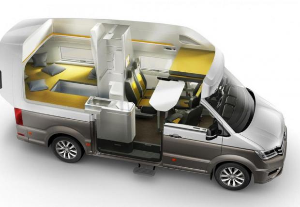 Името е достатъчно красноречиво - VW California XXL или уголемен с няколко размера вариант на култовия VW. Задницата прилича на мини остъклен балкон, таванът вътре е с 2,2-метра височина, а леглата са с дължина 2 метра. Това значи, че по-високите хора също ще се чувстват комфортно.