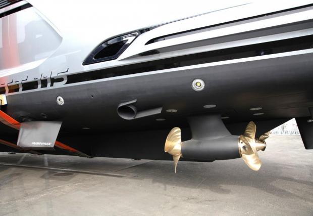 Задвижването? Ако очаквате няколко бутрурбо V8-мака от Panamera ще останете разочаровани. Моторите са два броя MAN V12 с по 1650 к.с. всеки, а за самото задвижване отговарят две конзоли Fortjes 5000 със срещуположно въртящи се пропелери. Максималната скорост е 21 възела (близо 40 км/ч), а обсегът и с едно зареждане е 6300 км при спокойно круизване с 10 възела.