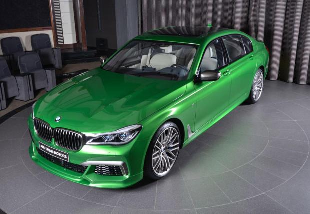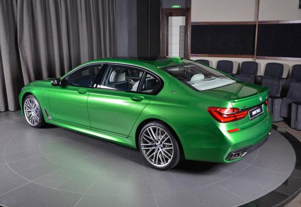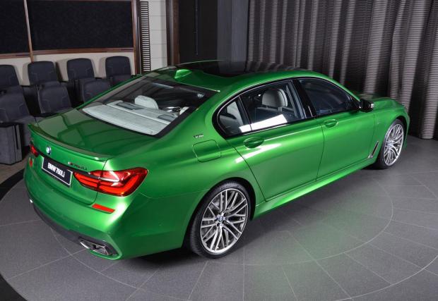 Със своя битурбо V12 с 610 коня, BMW M760Li съвсем не е скромна кола. Но този екземпляр е различен, макар и само заради цвета си. Само го погледнете! Естествено, идва от Абу Даби – къде другаде? Цветът се казва Rallye Green и е поръчково изпълнение към BMW Individual.