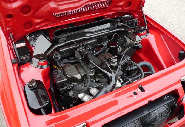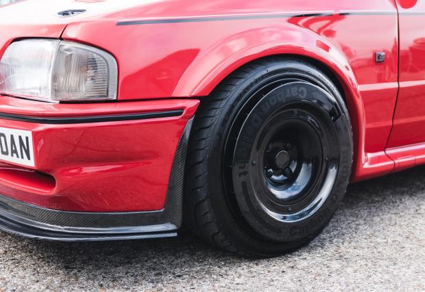 Карбоновата „зараза“ е проникнала и под предния капак, като под въглерода седи модифицирана глава и валове, ъпгрейднато турбо и малко части от Cosworth, за да развие мотора 220 к.с. и 315 Нм. Предвид масата на Escort-a, той би следвало да е доста забавен за каране. Що се отнася до интериорът, вътре радва приятна смесица от стокови и по-модерни компоненти. Огледалото например е електрохроматично, в таблото е вграден LCD дисплей, а серийните велурени седалки са в компанията на шофьорската Corbeau Revolution, с фиксирана облегалка и колани Luke.