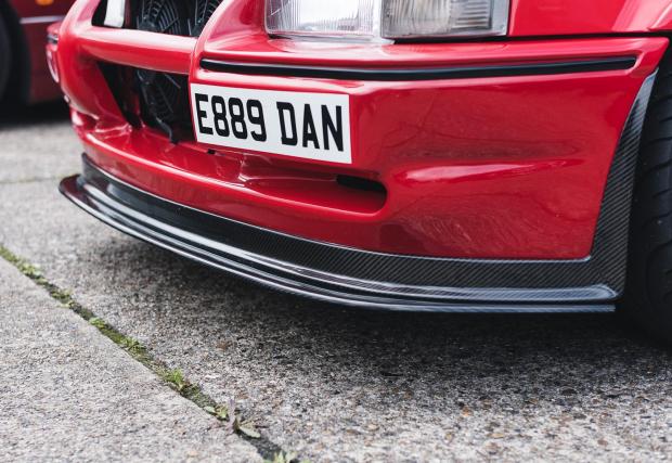 Оказва се, че много от компонентите по автомобила не са негови. Боядисан в якото Rosso Red, той носи част от предната броня на друг култов Ford - Sierra Sapphire Cosworth, като карбоновият лип в края е от RS500. От Sapphir-a са и отворите в предния капак, a задният е от Escort RS1700Т. Той е модифициран да приеме лип спойлер от BMW E30 M3 Evo и по-късно изграден изцяло от карбон.