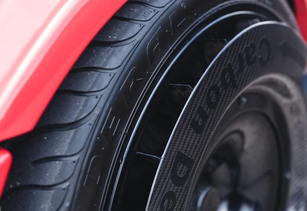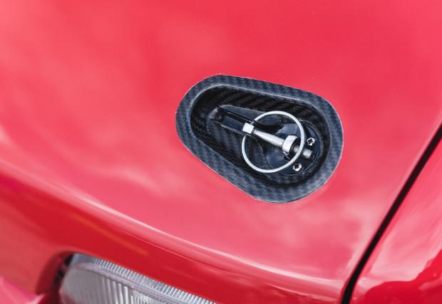 Ако разгледате внимателно галерията ще видите, че по този Ford има доста карбон. Не се вижда само таванът, който е… карбонов, каквито са и капаците на 17-ичновите Compomotive джанти. Прототипите на аеро елементите Дейвид изработва сам, след което ги дава на Carbon Delight, за да му направят тези прекрасни въглеродни „тави“. Има и още „чужди“ части. Огледалата например са скъсени от Audi 80, а задната броя е модифицирана от BMW E46 компонент.