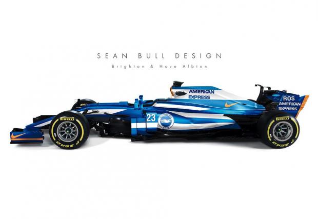 В DizzyRiders.bg не претендираме да сме съвършени познавачи на футболния свят. Не претендираме дори за несъвършени, но от време на време играта на зеления килим ни грабва и сега сме изправени пред точно такъв момент. Попадна ни интересна галерия, която свързва Формула 1 с британската Премиър Лийг. Какво е общото? Това, че Sean Bull Design показва как биха изглеждали болидите от Формула 1, ако носеха цветовете на футболните отбори от лигата.