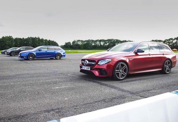 Mercedes-AMG E 63 S срещу Audi RS 6 срещу BMW M760Li срещу Tesla Model S P100D. Видео
