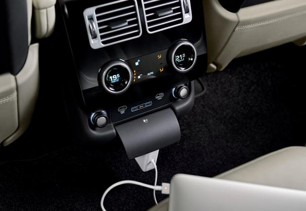 Друго ново? Доста неща, но нека продължим със салона. Вече може да карате Range и със селектор на скоростие в стил Jaguar F-Type, а не само с приятни метална, цилиндрична врътка. Също от Jag идва системата за заключване и отключване на колата с гумена гривна – ключът ви може да е върте, а „електронното бижу“ не се плаши от къпане, което е удобно, особено през лятото. Също така колата идва със съвместивмост с ред приожения, като например такова чрез което може да аранжирате салона през телефона си. Искате да сгънете втория ред седалки, хоп, и колата го прави по команда от телефона. Яко.