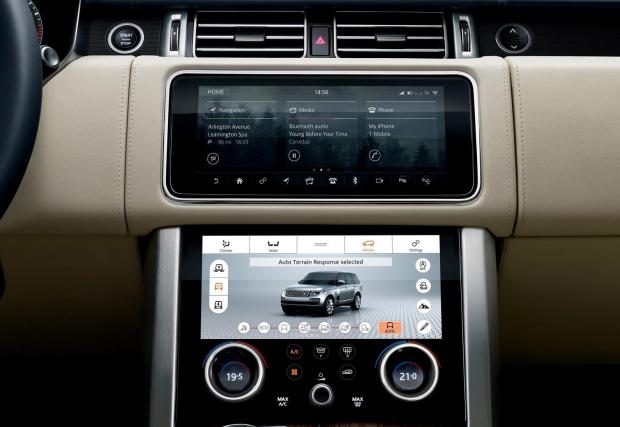 Време беше Land Rover да обнови най-големия си модел, още повече след излизането на готиния Velar (кликнете тук за нашия тест на колата). И промените са именно в тази посока, особено вътре в салона, където се очакваше двата 10-ичнови тъч дисплея (Touch Pro Duo), да заменят повечето физически копчета. Воланът също е изпълнен в стила на Velar, с черни бутони, които са видими само, когато подсветката им работи. Приличат на тъч повърхности, но не са – това са истински копчета, които дават приятна обратна връзка при онатискане.