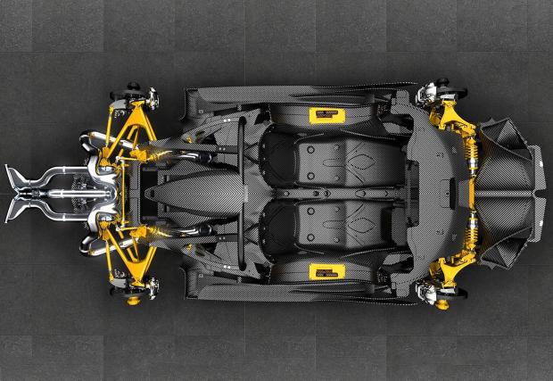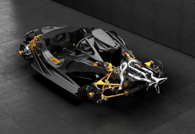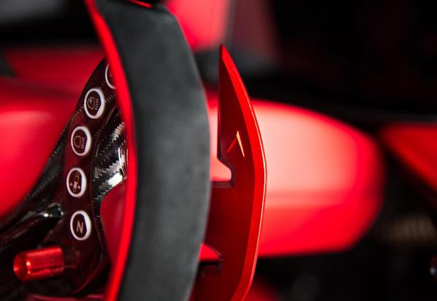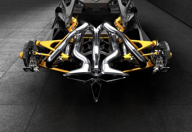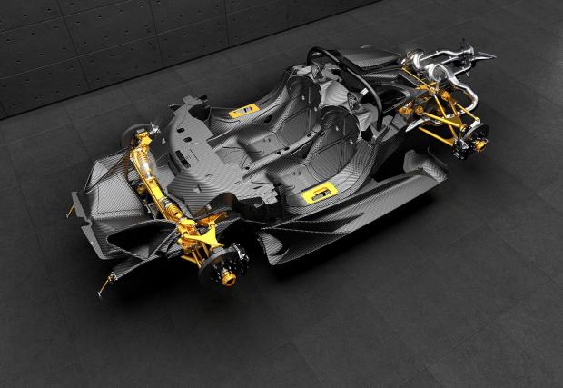 Резултатът е мощност от 780 к.с. при 8500 об/мин и 760 Нм при 6000 оборота. Стабилни стойности, които отиват към задните колела през състезателна трансмисия Hewland. Динамиката? Ускорение от 0-100 за 2,7 секунди и максимална скорост 335 км/ч. Тук е момента да споменем, че автомобилът е предназначен за пистово каране, но ще може и да се регистрира за шосейна употреба.
