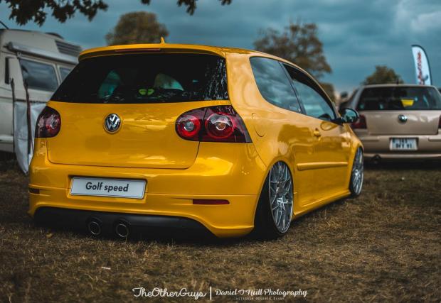 Нямаме никаква информация за колата, освен тази, която можем да заключим от петте кадъра. Но е видно, че колата е на въздух, модификацията е R32 или поне външния кит е такъв, а джантите са 19-инчовите красавици Apollo. Ако и спирачките са от LP 560-4, значи този Golf спира с 365-милиметрови дискове и 8-бутални апарати отпраде, а отзад работят 356-милиметрови дискове и 4-бутални апарати.