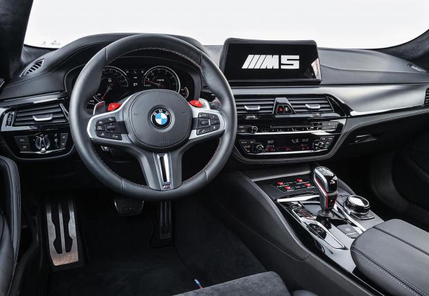 Или поне до това на което може да заприлича серийната М5-ца, след като се накичи с аксесоари от M Performance каталога на BMW. От него не може да поръчате само предния сплитер, който е изработен специално за MotoGP колата и вероятно светлинната сигнализация. Вътре в салона няма много промени, предните седалки са от M4 GTS, има няколко бутона за специализираните системи и това е.