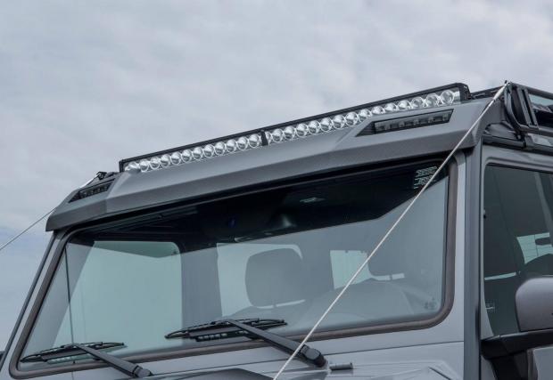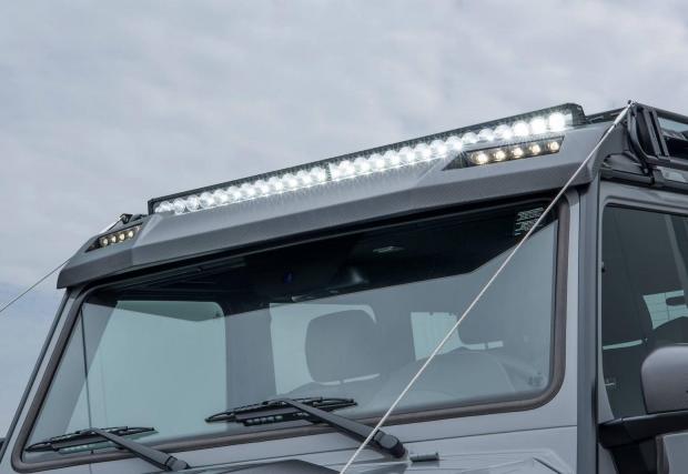 По-съществени обаче тук са лебедката, допълнителното осветяване и електронното окачване. Колата разполага със система за спускане и надуване на гумите за истински тежките ситуации, както и с ултралуксозен интериор с интернет свързаност, в случай че бизнес задълженията ви не ви дават мира дори в джунглата.