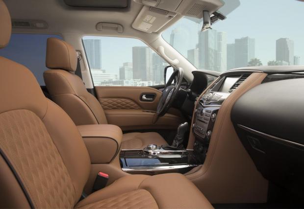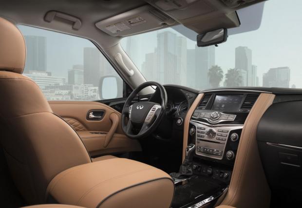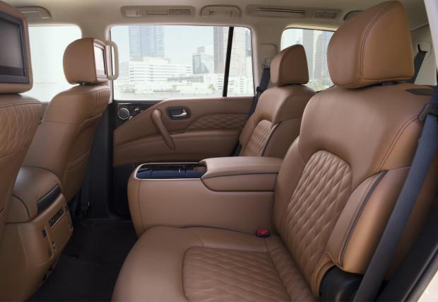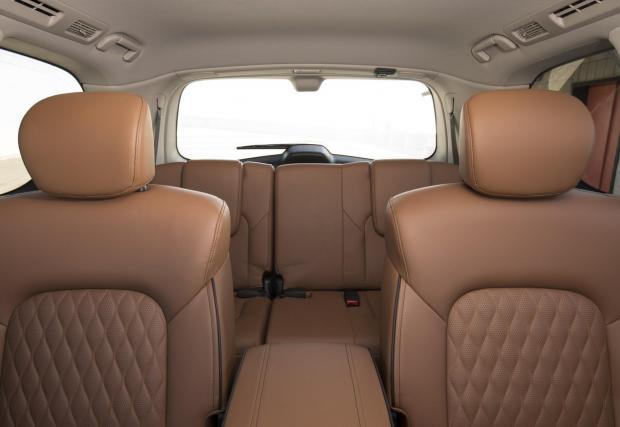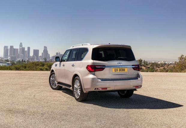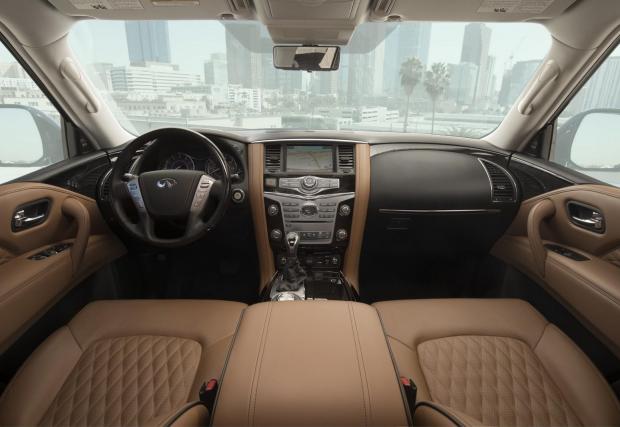 С дължината си от 5,33 метра и височината от 2,03 м, QX80 превъзхожда дългата база на Range Rover. Вътре могат да се поберат до осем души, въпреки че кралската конфигурация е с четири отделни кресла. Епохалната радиаторна решетка и размерите, съперничещи на училищен автобус, правят QX80 повече от достолепен.