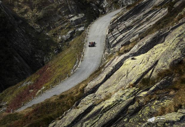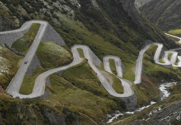 При това по павиран 200-годишен проход? Определено това е ново. Проходът е Сен Готар в Швейцария. Изглежда така от около два века, но е използван и преди двайсет века от римляните, които прокарват път през Алпите точно тук.