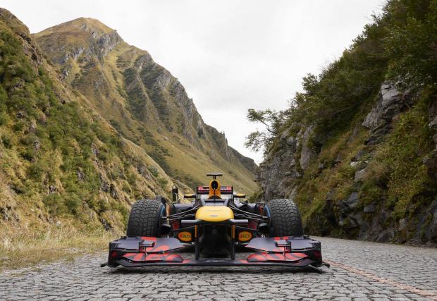 Red Bull докара болида си (всъщност е 5-годишна кола от епохата Себастиен Фетел), за да го качи до почти 3000 метра надморска височина. Зад волана седна Себастиен Буеми, швейцарски пилот, който кара за Скудерия Toro Rosso през 2009-2011.