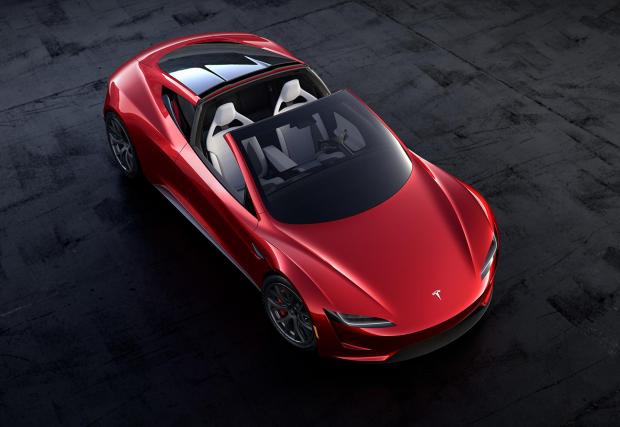 Всички цифри около новата Tesla Roadster са… абсурдни. Мъск казва, че 4-местният кабриолет (стъклен махащ се покрив) ще бъде най-бързата серийна кола. Ще бъде, защото заводската версия щяла да се появи през 2020-та година. Задвижването е двойно, а въртящият момент на колелата е 10 000 Нм.