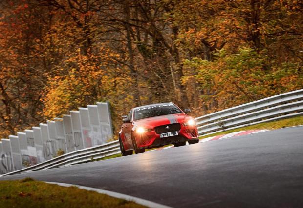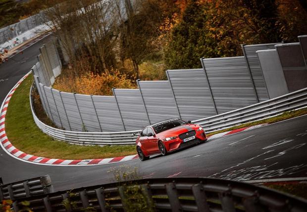 Jaguar може да се похвали с титлата „Най-бърз седан с 4 врати на Нюрбургринг“. Колата-герой е най-малкият им седан XE, в най-бруталното изпълнение SV Project 8: 5-литров V8 с компресор, 600 к.с., 700 Нм, двойно предаване, 3,5 сек от 0-100 км/ч и максимална скорост от над 320 км/ч. И рекорд на „Нордшлайфе“ - 7:21,23.