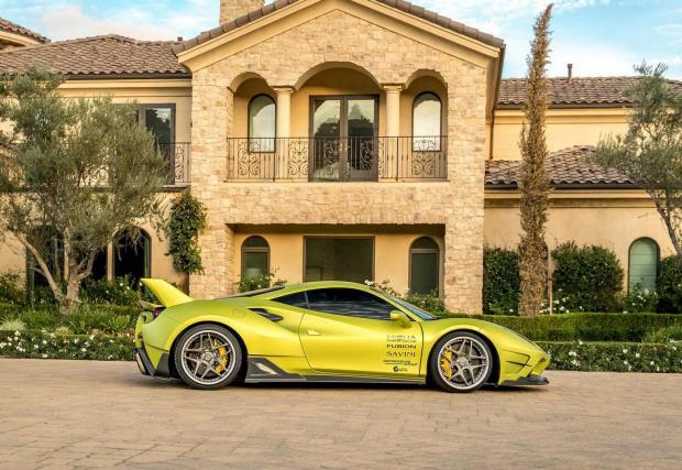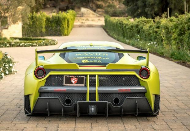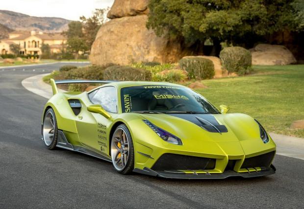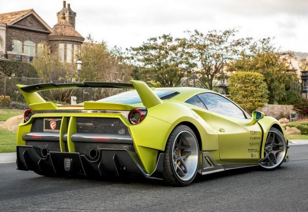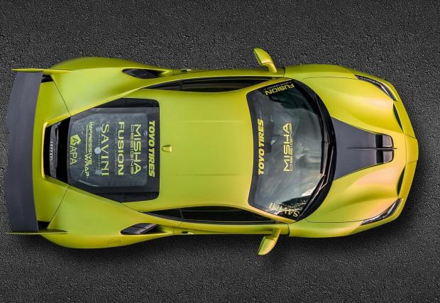 Завършено в цвят Satin Lime Green и с доста елементи, оставени в небоядисан карбон, италианското конче изглежда неустоимо бързо. Раздувките го разширяват с цели 7,6 см от всяка страна, добавени са нови брони, огромно задно крило и джанти Savini, обути в полупистови гуми Toyo.