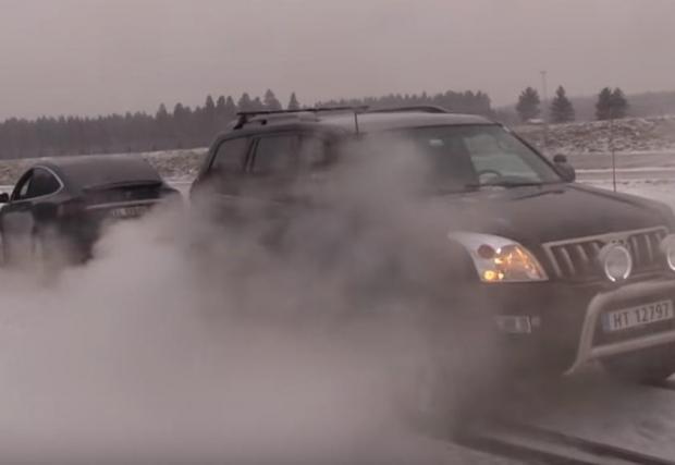 Претендентът срещу нея е иконата Toyota Land Cruiser с дизелов двигател ( 3.0 литров, 173 к.с. и 410 Нм). Очевидно в това упражнение електромоторите с мигновено налични 970 Нм и също доста респектиращите 680 к.с. имат сериозно предимство. И двете коли разчитат на зимни гуми, но Model X e с шипове, което е поредният аргумент в нейна полза. Резултатът ще видите във видеото.