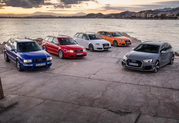 RS 2 (синята кола на снимките) трябваше да бъде произведен в едва 2200 броя, но интересът беше достатъчно голям, за да накара Audi да направи 2891 коли с епохалния 2,2-литров 5-цилиндров мотор с 315 к.с., разработен съвместно с Porsche. Легендата RS Avant бе поставена. Последваха B5, B7 и B8, които по един или друг начин също се превърнаха в легенди, за да дойде настоящият модел B9 и завръщането към шестаците.