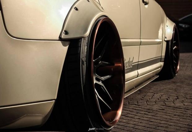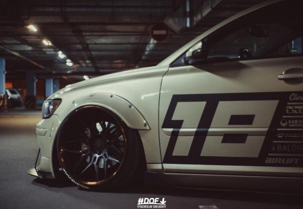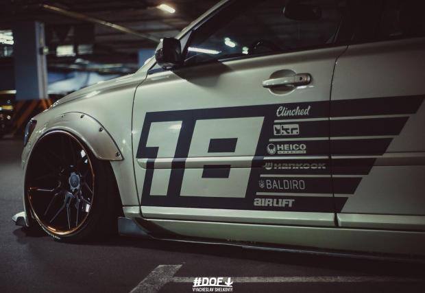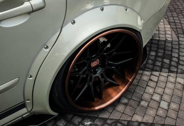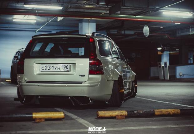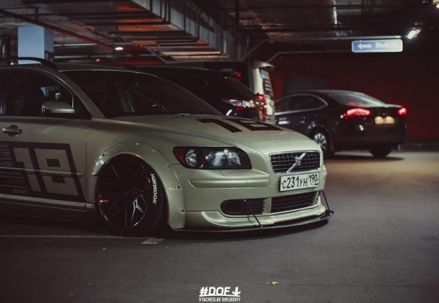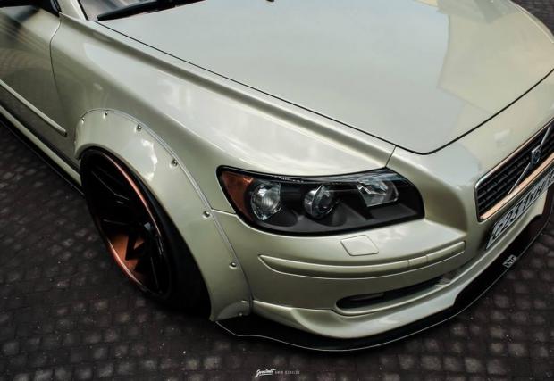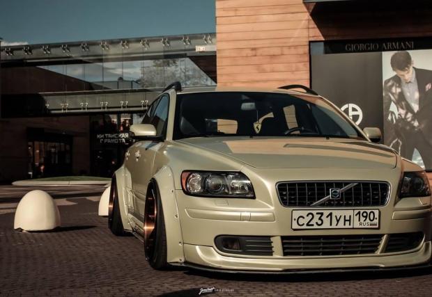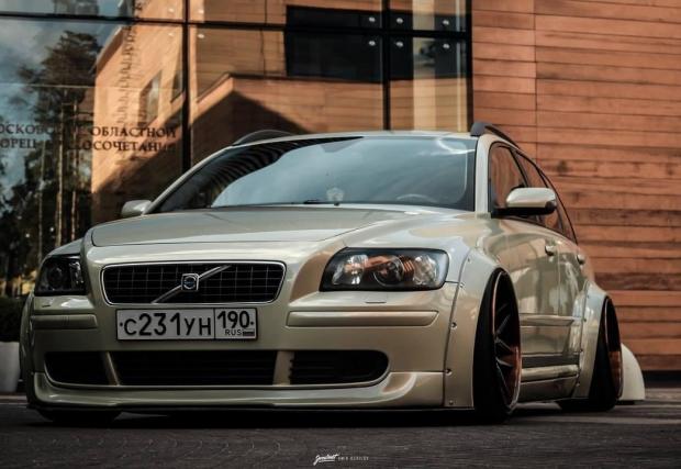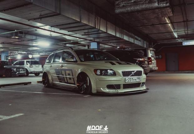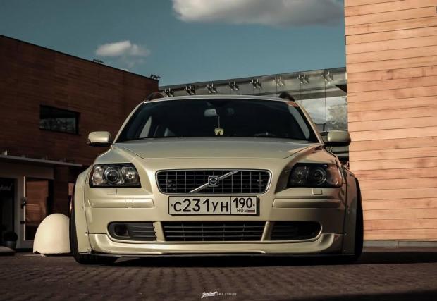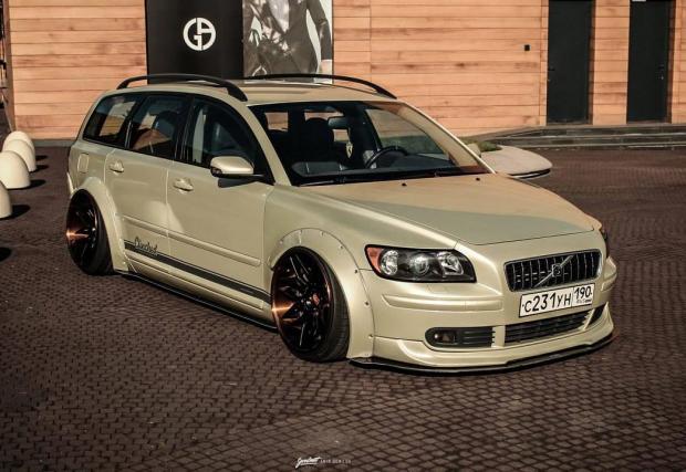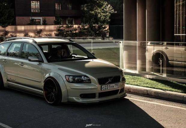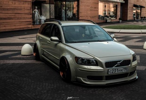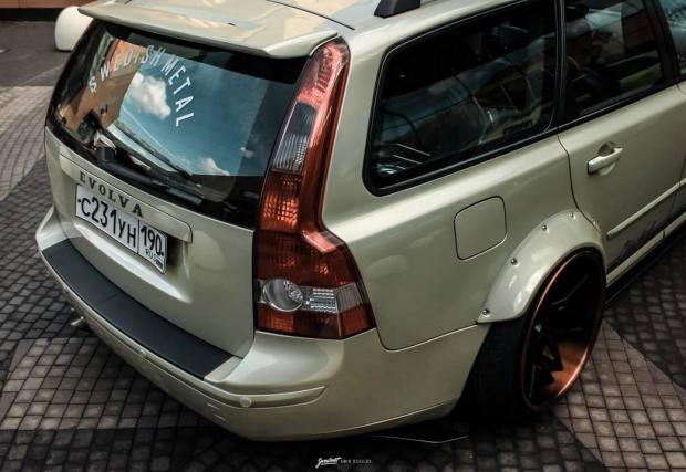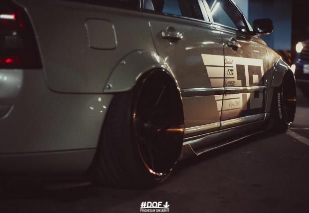 Тоест, колата все още е практична? Ами, може да се каже, благодарение на способността на окачването да я вдигне до разумен клиренс. Макар, че пак трябва да се внимава с бодикита. Праговете и сплитерът са KRaero, а раздувките на калниците са по 7 см Clinched New School. Що се касае до джантите, първоначално са били от Jaguar, но вече са интересните Baldiro. Да или не за това руско Volvo?