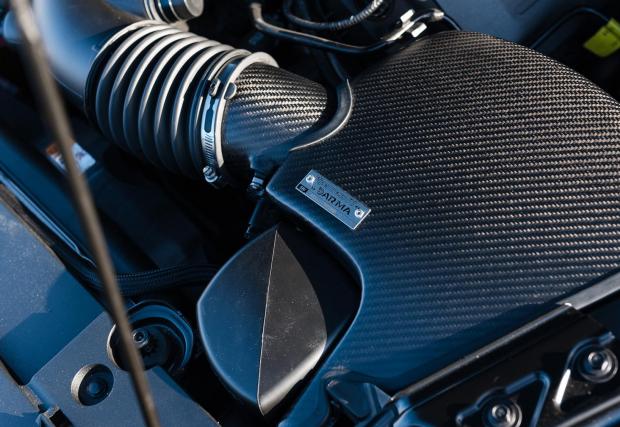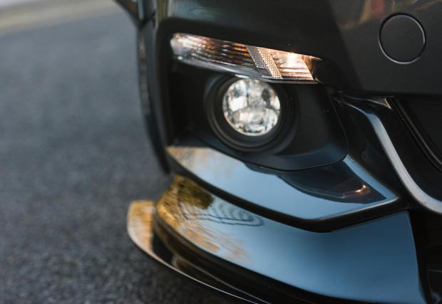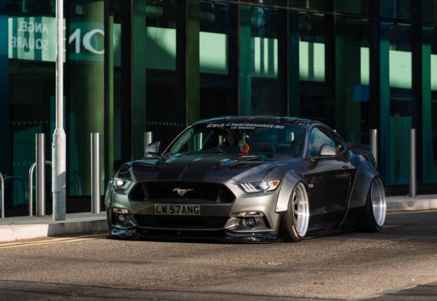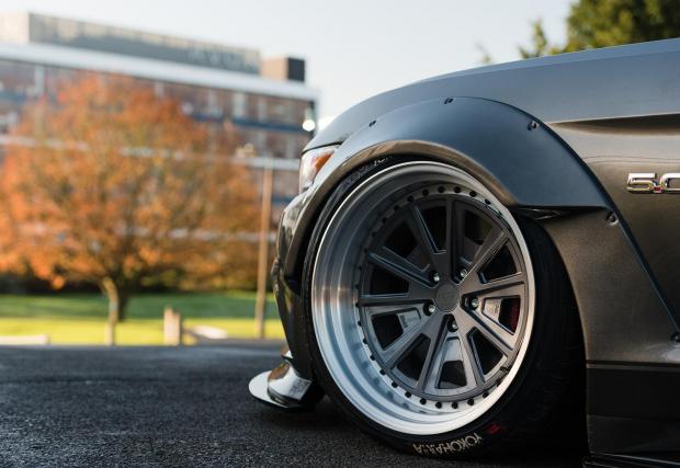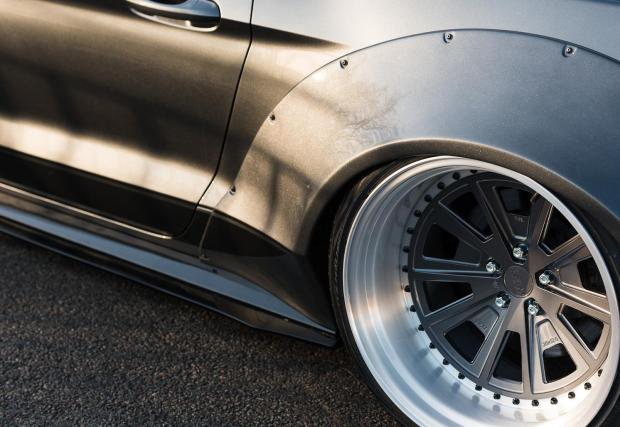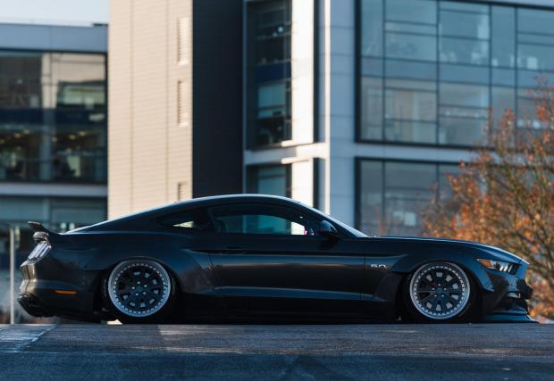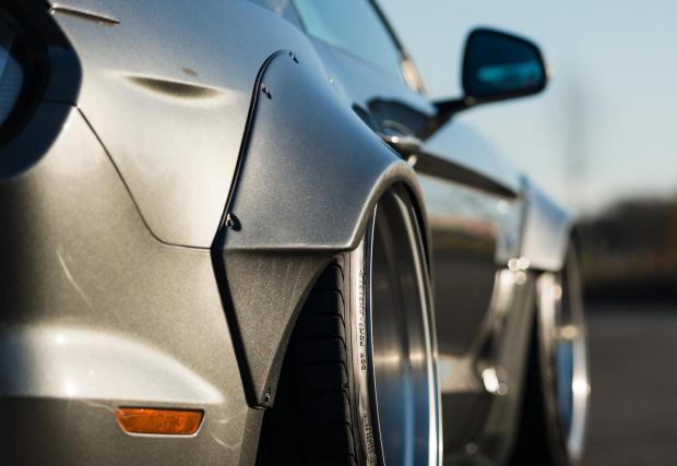 Колата е раздута със 6,5 инча и носи японски бодикит от Liberty Walk (кликнете тук за галерия от ателието), качена е на въздушно окачване AirREX и търкаля яките 3SDM джанти, които са интерпретация на колелата на Eleanor. Моторът разбира се е 5-литровия V8, снабден е с Pipercross V1 Carbon всмукателен колектор, а скоро ще получи и компресор за около 700 коня.